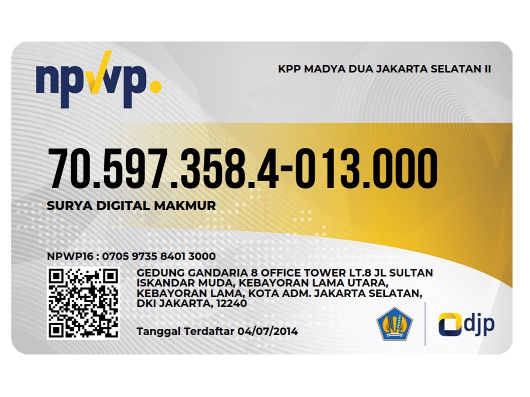 PT Surya Digital Makmur is a legally registered Indonesian company with complete business licenses, tax registration, and government procurement authorisation.